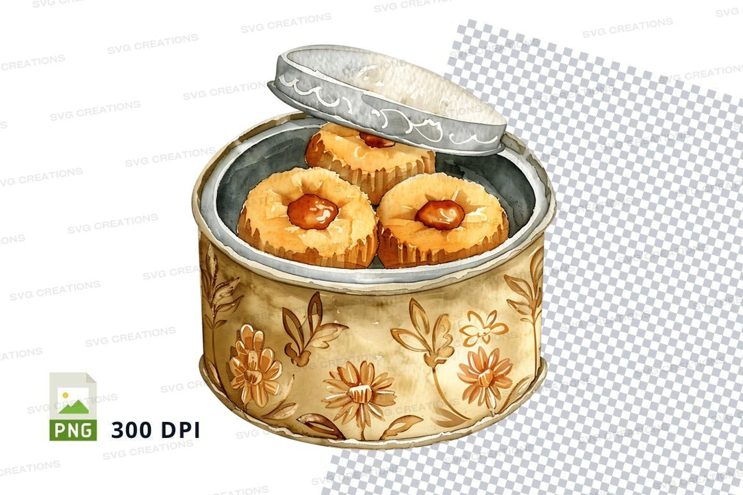 Similar Design Products to Fresh donuts in floral tin container clipart png