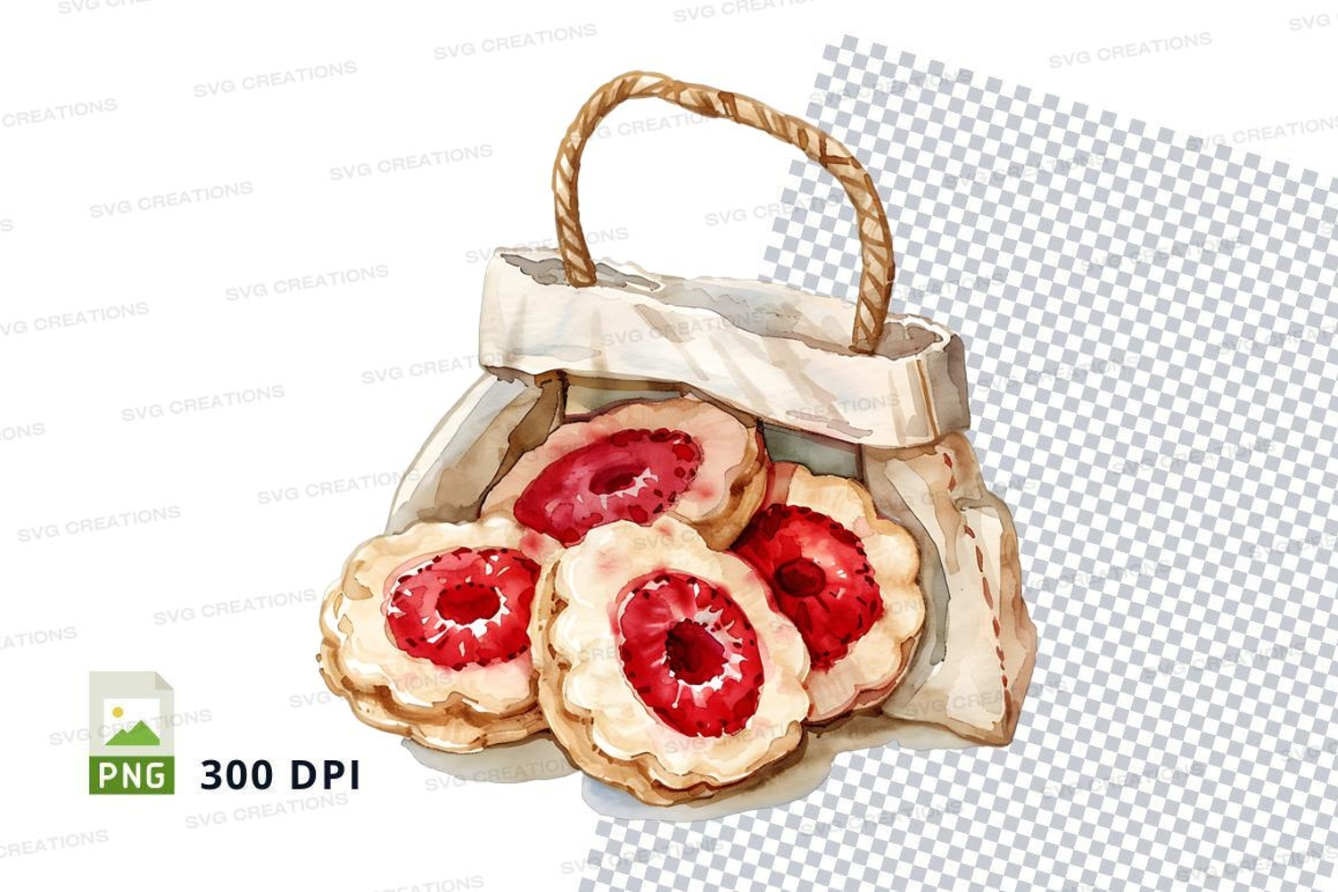 Similar Design Products to Red sprinkle donuts in woven basket clipart png