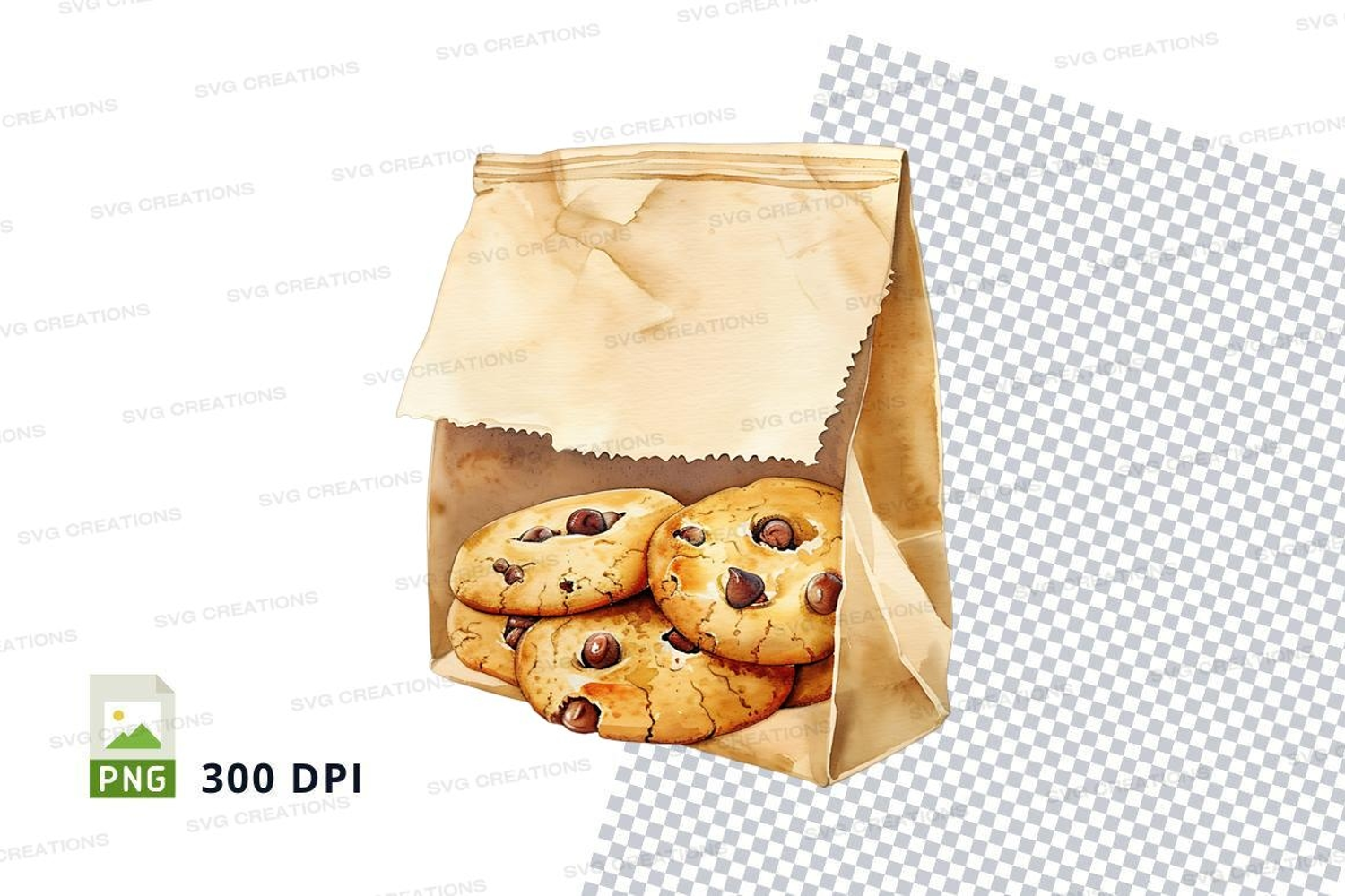 Similar Design Products to Chocolate chip cookies in paper bag clipart png transparent