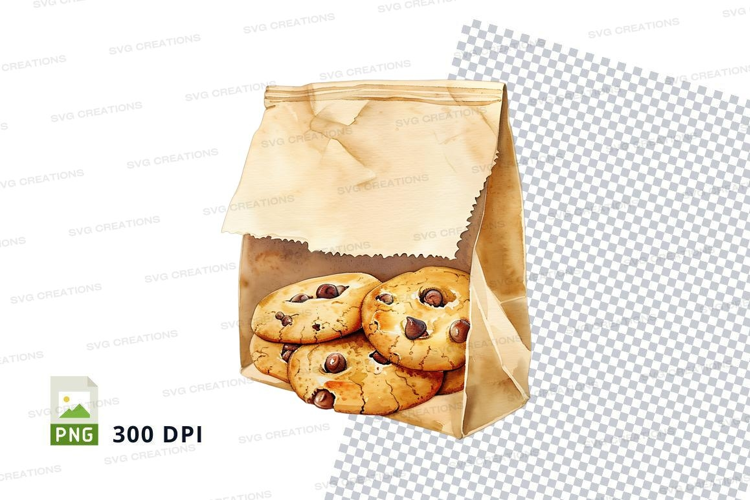 Chocolate chip cookies in paper bag clipart png transparent example image 1
