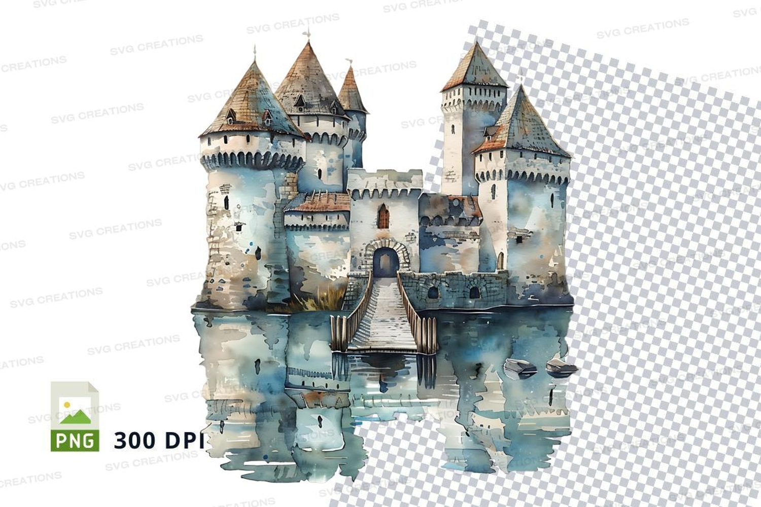 Fantasy castle clipart reflection water digital illustration example image 1