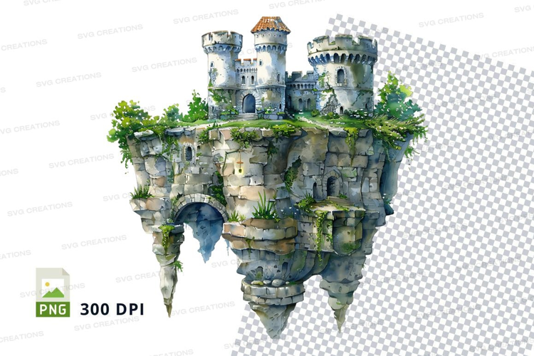 Floating castle fantasy clipart isolated on white 300 DPI PN example image 1