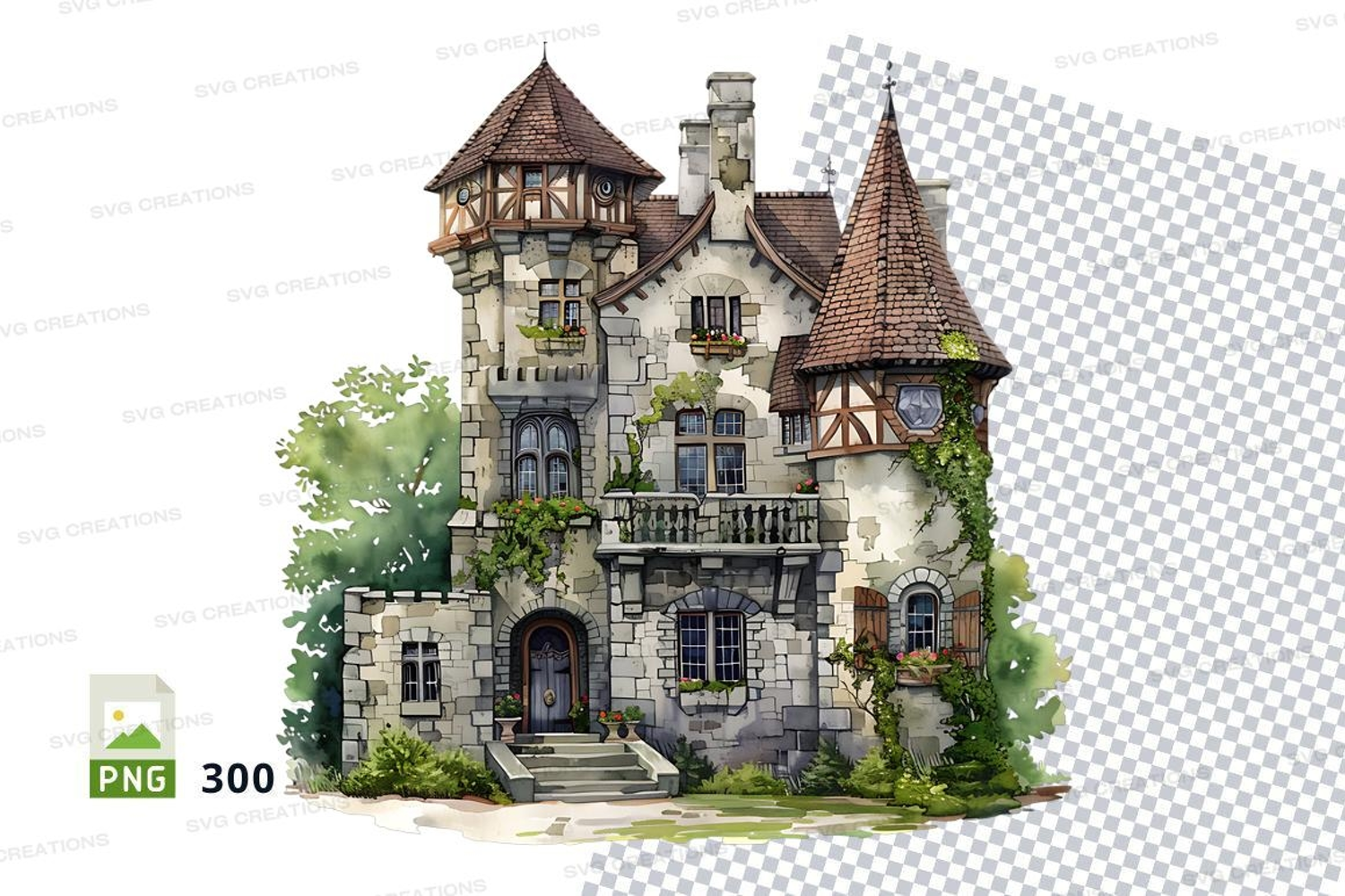 Similar Design Products to Haunted Victorian mansion clipart isolated white background