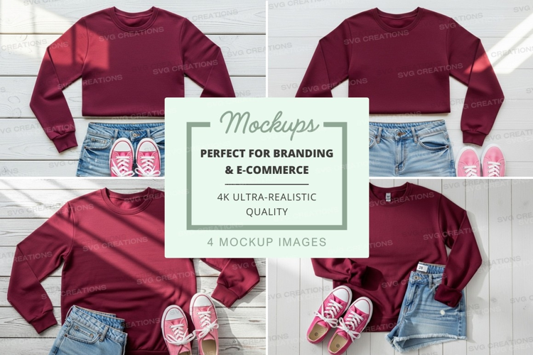 Fashion Clothing Mockup Jeans Top Burgundy Denim Crop Shorts Hoodie