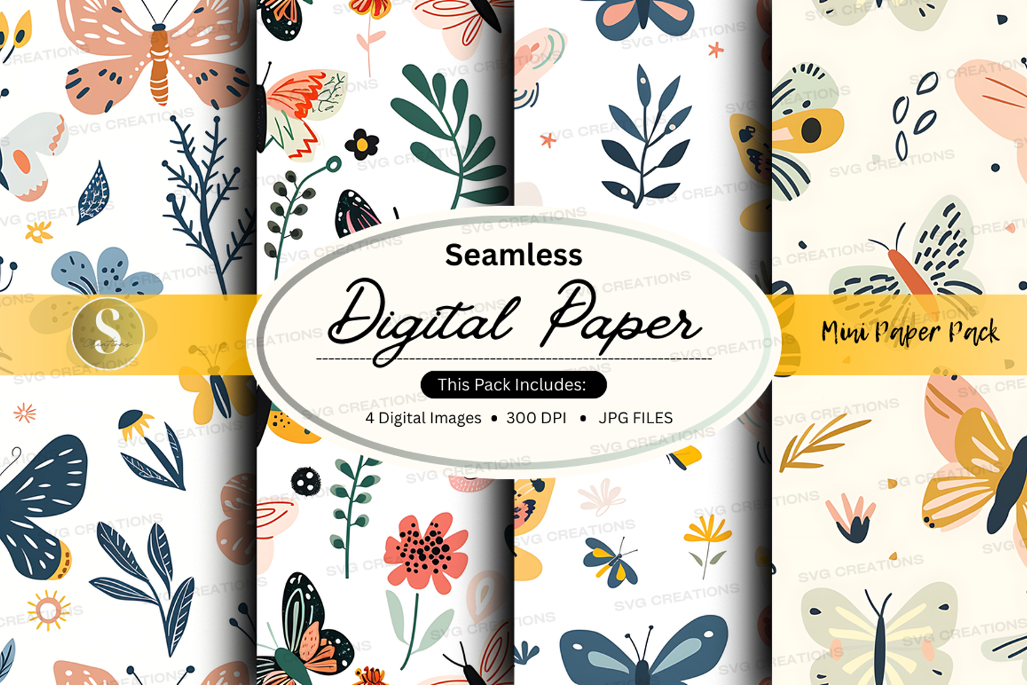 Seamless digital paper pack floral butterfly patterns backgr example image 1