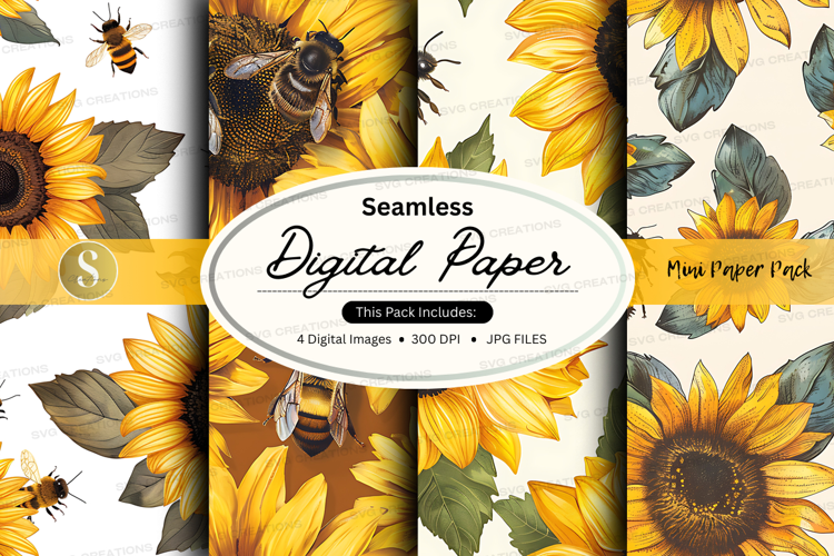 Texture Paper Floral Digital Pattern Background Yellow Seamless Bee Sunflower