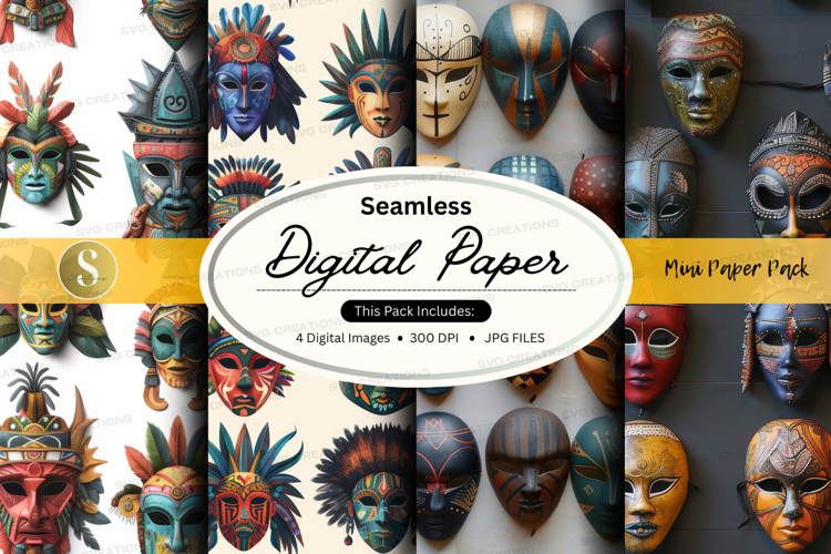 Seamless digital paper pack with tribal masks textures