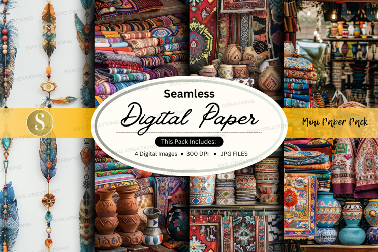 Similar Design Products to Seamless digital paper textures with ethnic patterns and gol
