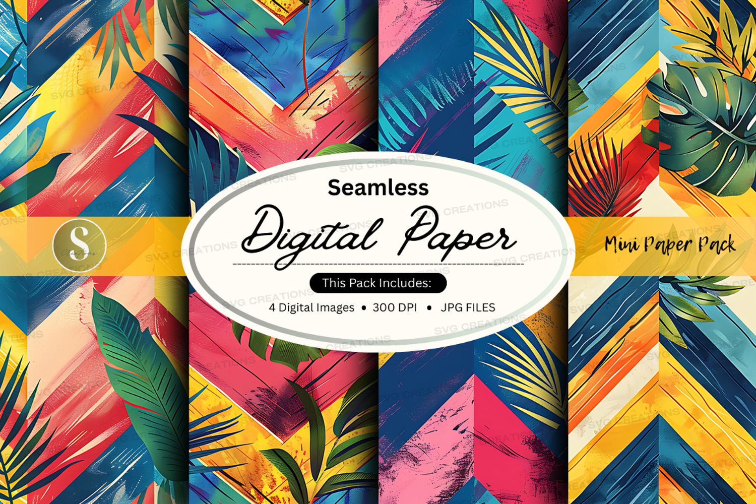 Seamless tropical digital paper pack with vibrant patterns example image 1