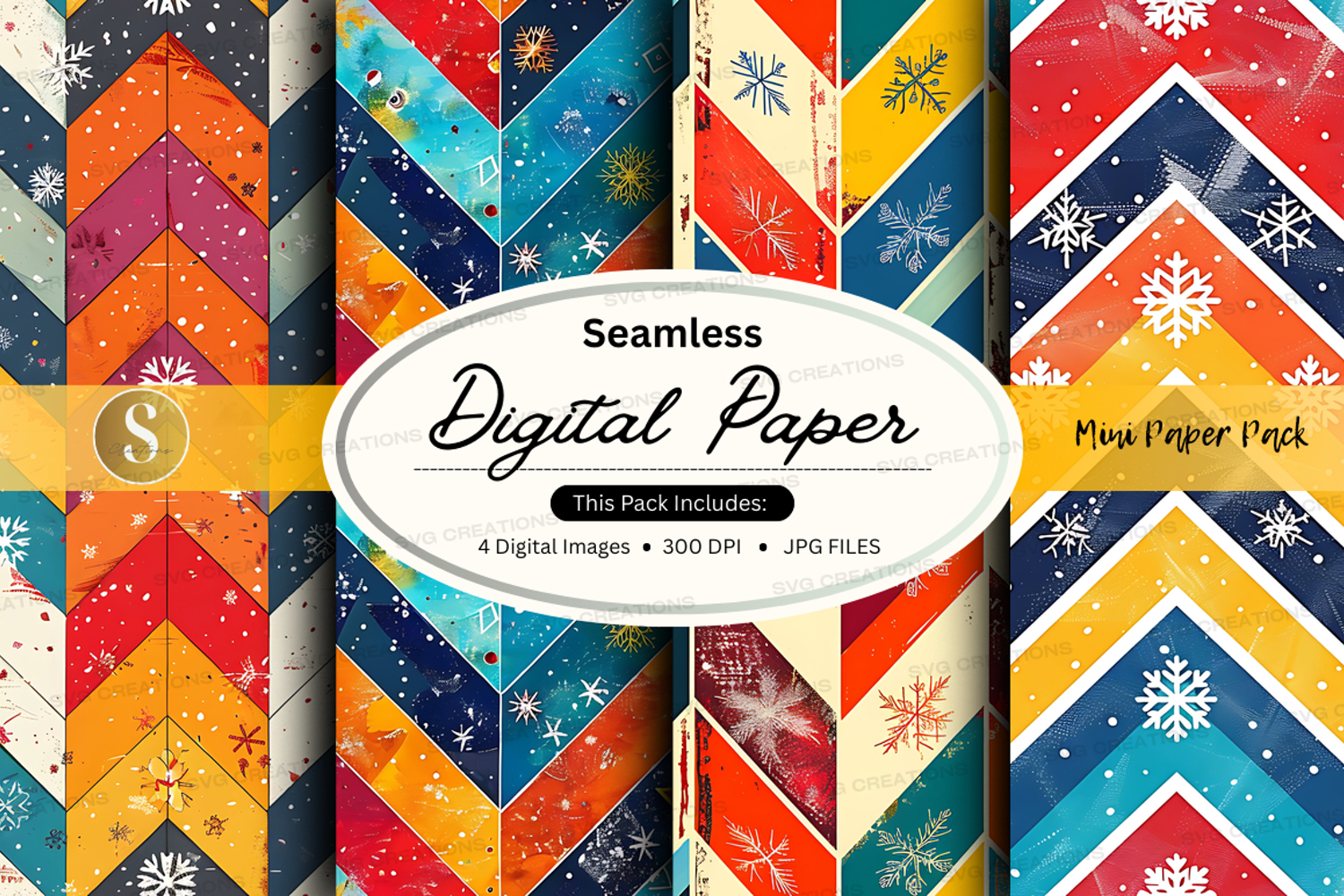Similar Design Products to Seamless digital paper pack with geometric patterns and snow