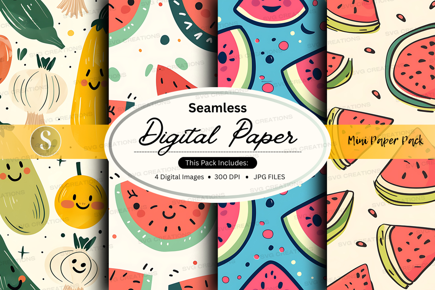 Similar Design Products to Seamless digital paper pack with watermelon and smiley desig