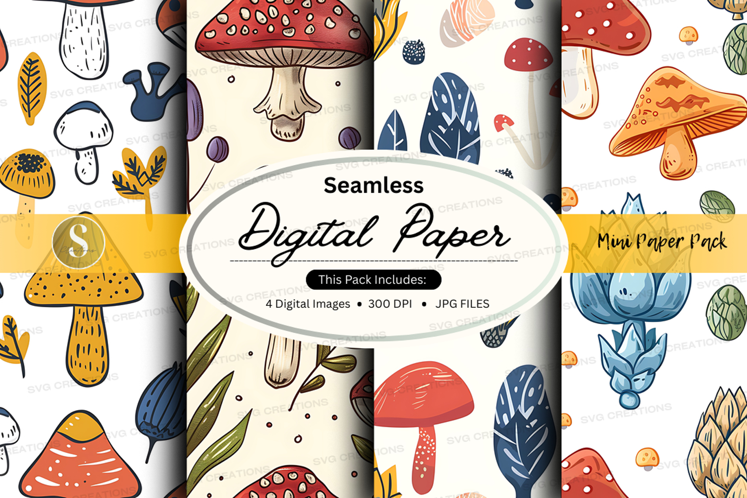 Similar Design Products to Seamless mushroom digital paper pack background textures