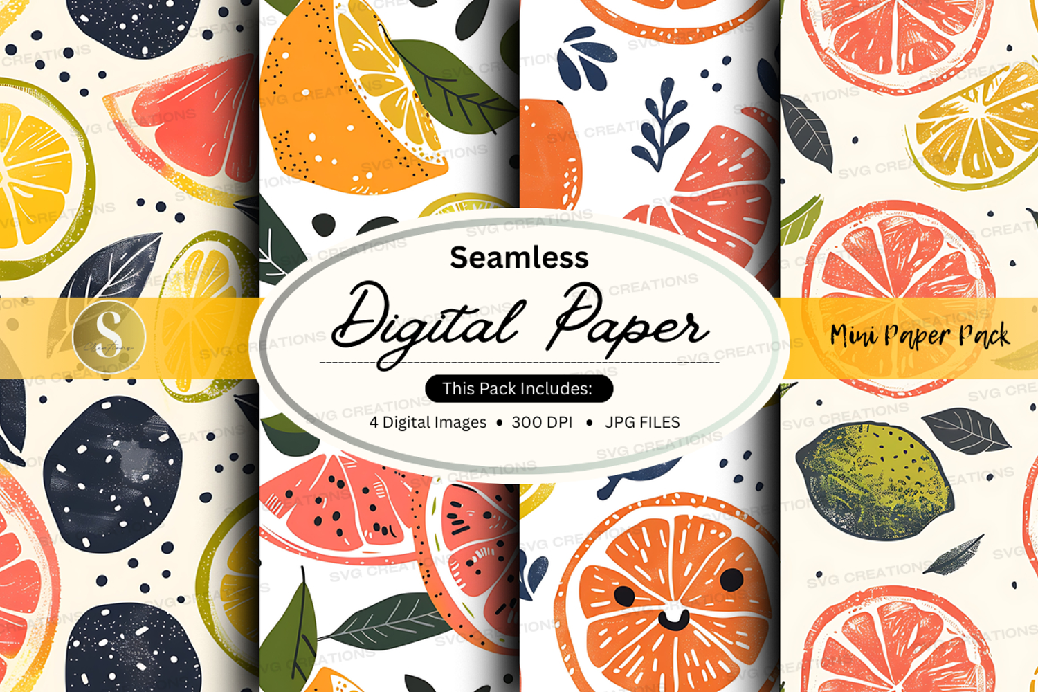 Seamless citrus digital paper pack watercolor fruit patterns