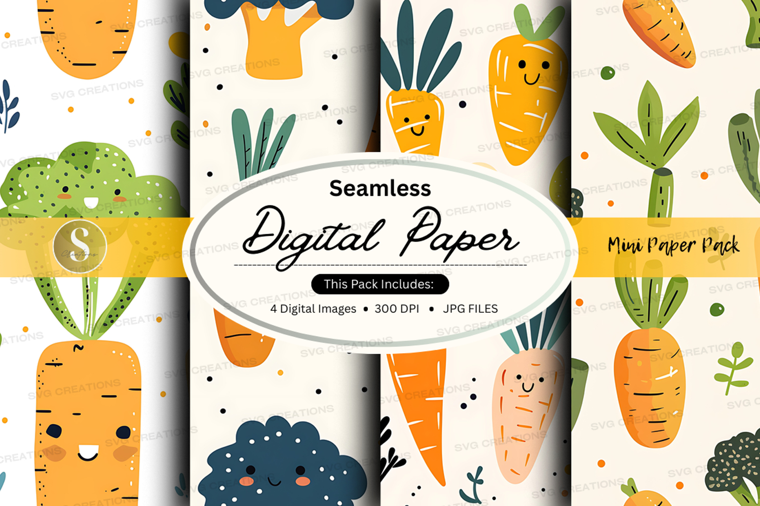 Similar Design Products to Seamless digital paper pack with cute vegetables and plants