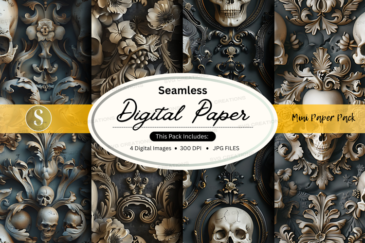 Vintage Texture Gothic Paper Ornate Dark Digital Pattern Background Seamless