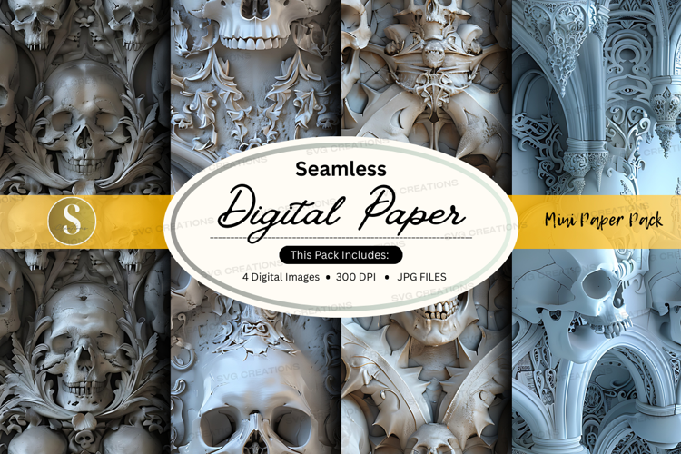 Seamless skull digital paper texture pack vintage grunge example image 1