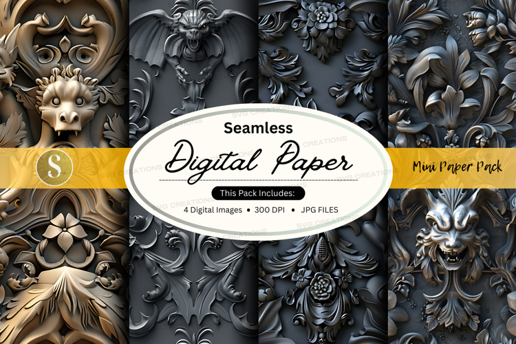 Gothic Paper Floral Ornate Dark Digital Pattern Background Seamless Baroque