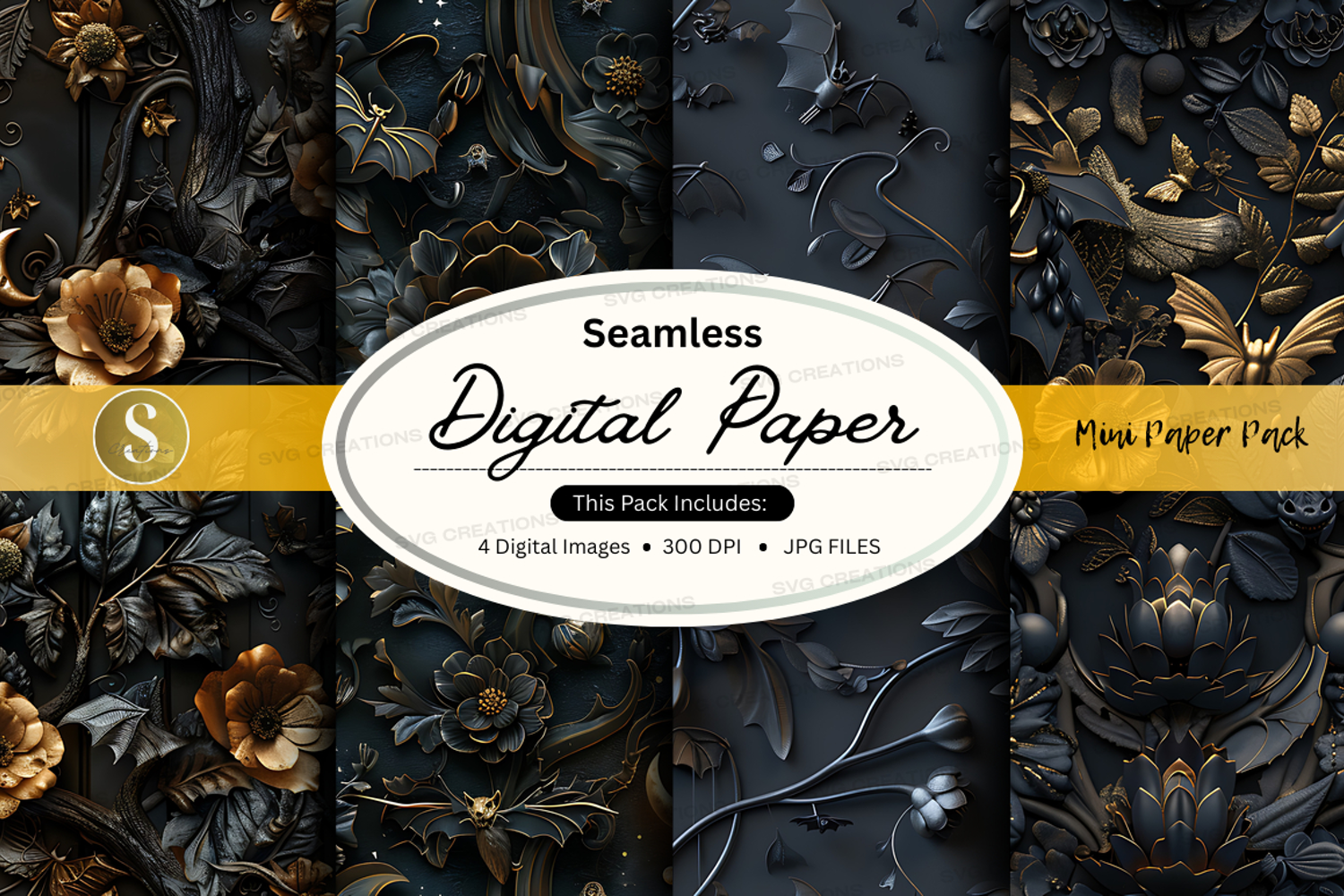 Texture Elegant Gold Black Design Paper Floral Digital Pattern Seamless