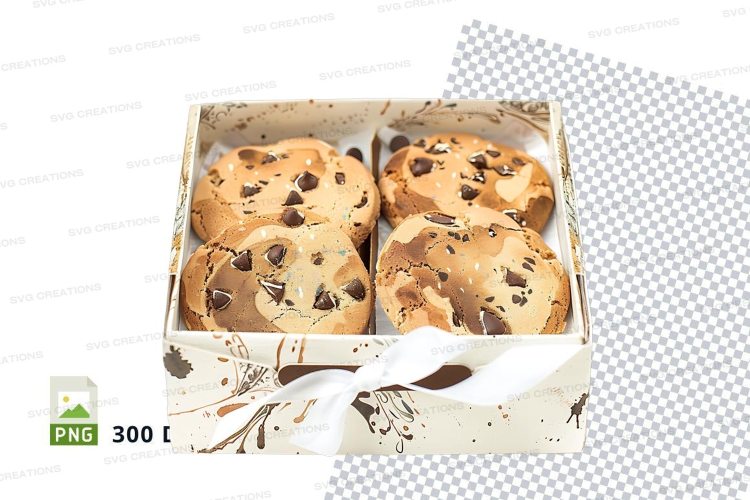 Chocolate chip cookies in rustic wooden box clipart png example image 1