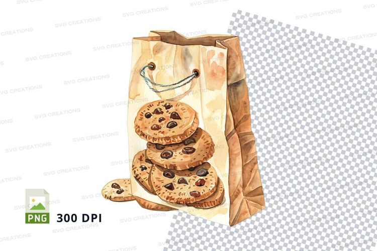 Stacked chocolate chip cookies paper bag clipart PNG example image 1