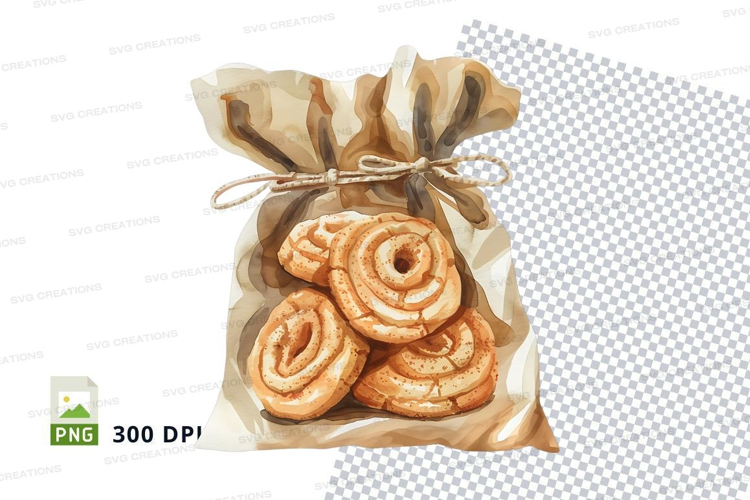 Cinnamon rolls gift bag clipart transparent PNG high detail example image 1