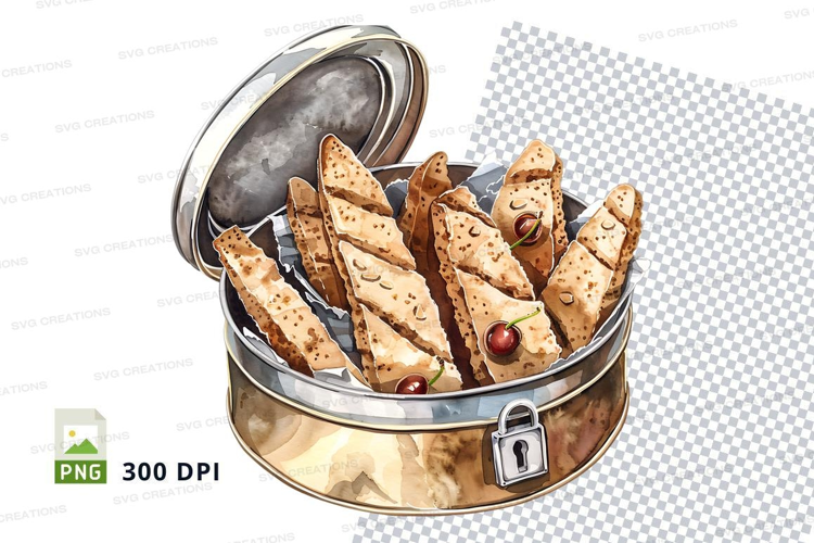 Fresh baked biscotti cookies in metal tin clipart png example image 1