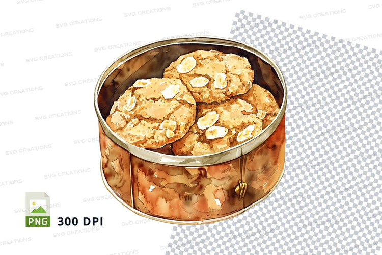 Golden almond cookies in tin can clipart transparent PNG example image 1