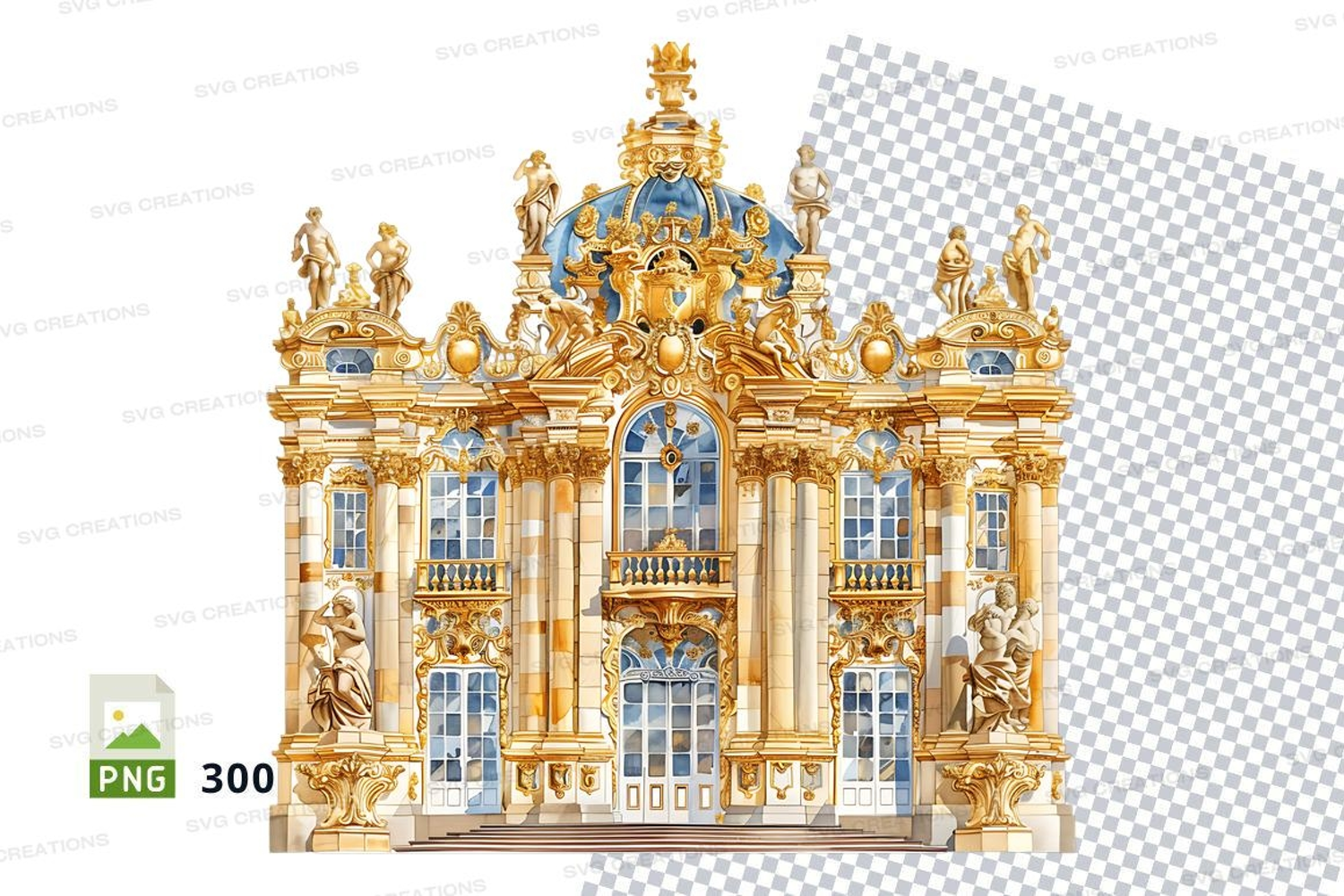 Golden Baroque Palace Clipart PNG Ornate Architecture