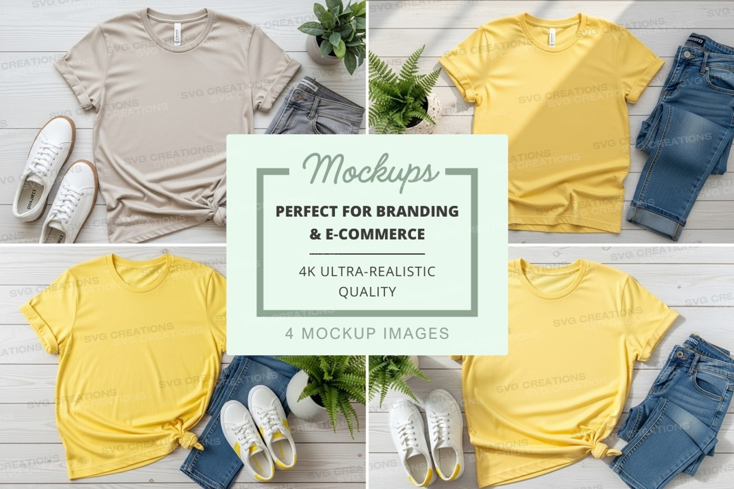 Tshirt Clothing Casual Mockup Apparel Yellow Jeans White Denim Sneakers