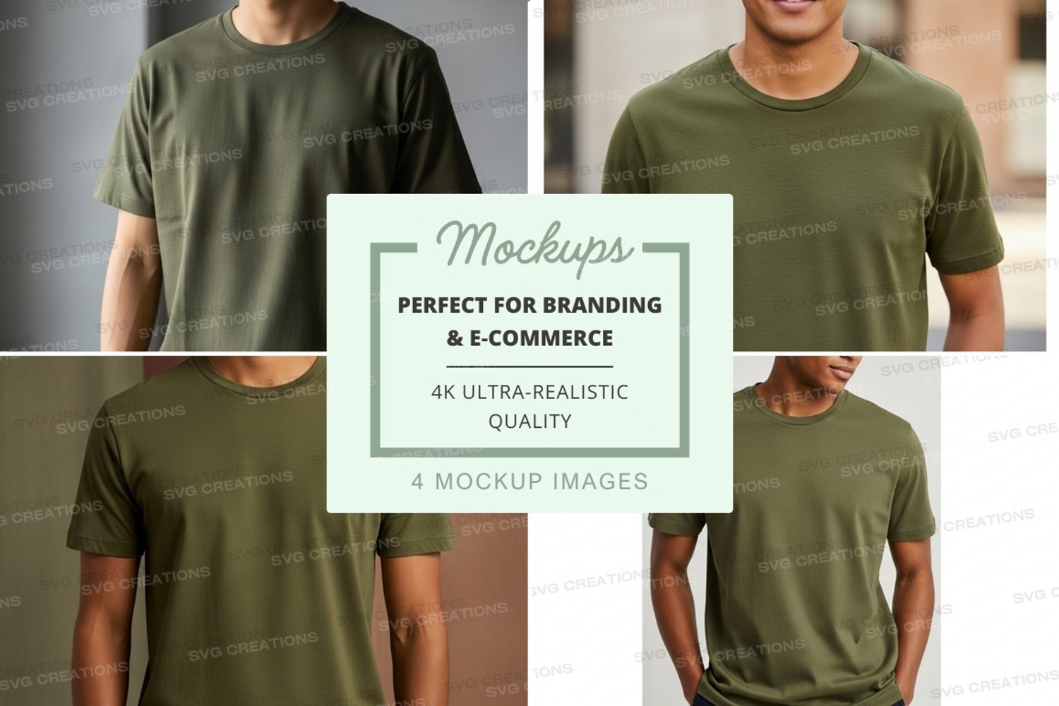 Similar Design Products to Man wearing green t-shirt mockup for branding ultra realisti