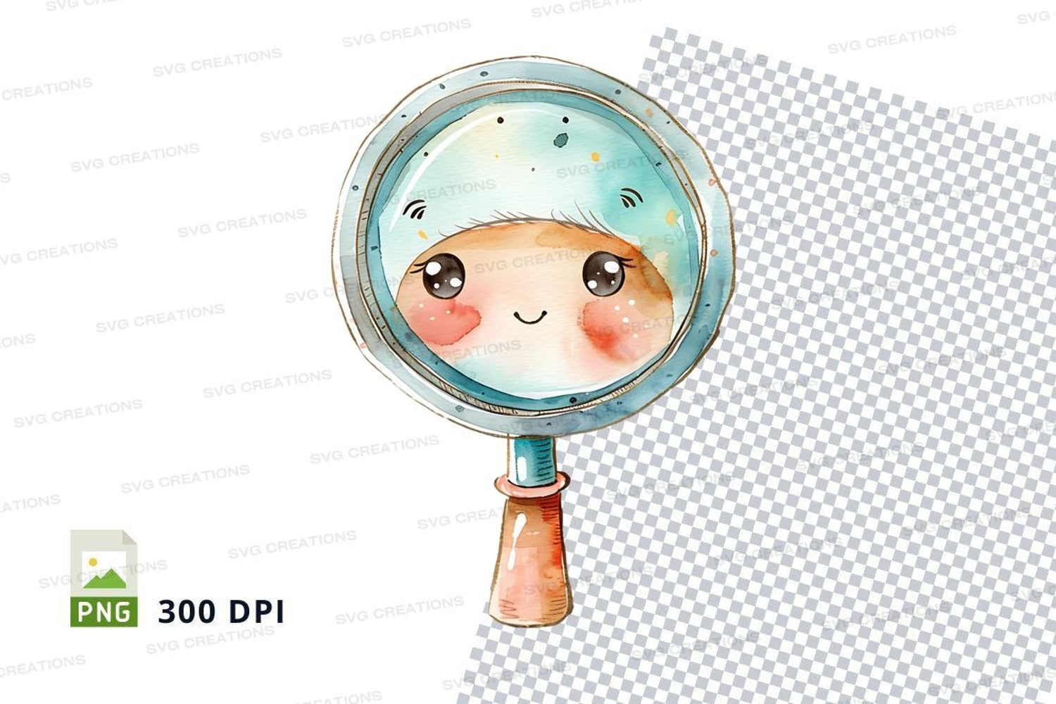 Cute magnifying glass clipart with happy face, search icon, example image 1