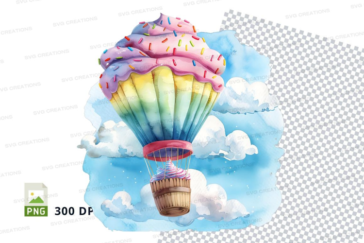 Colorful hot air balloon floating in sky clipart PNG example image 1
