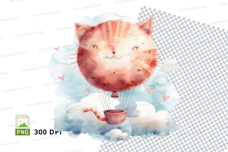 Cute orange cat in hot air balloon clipart illustration example image 1