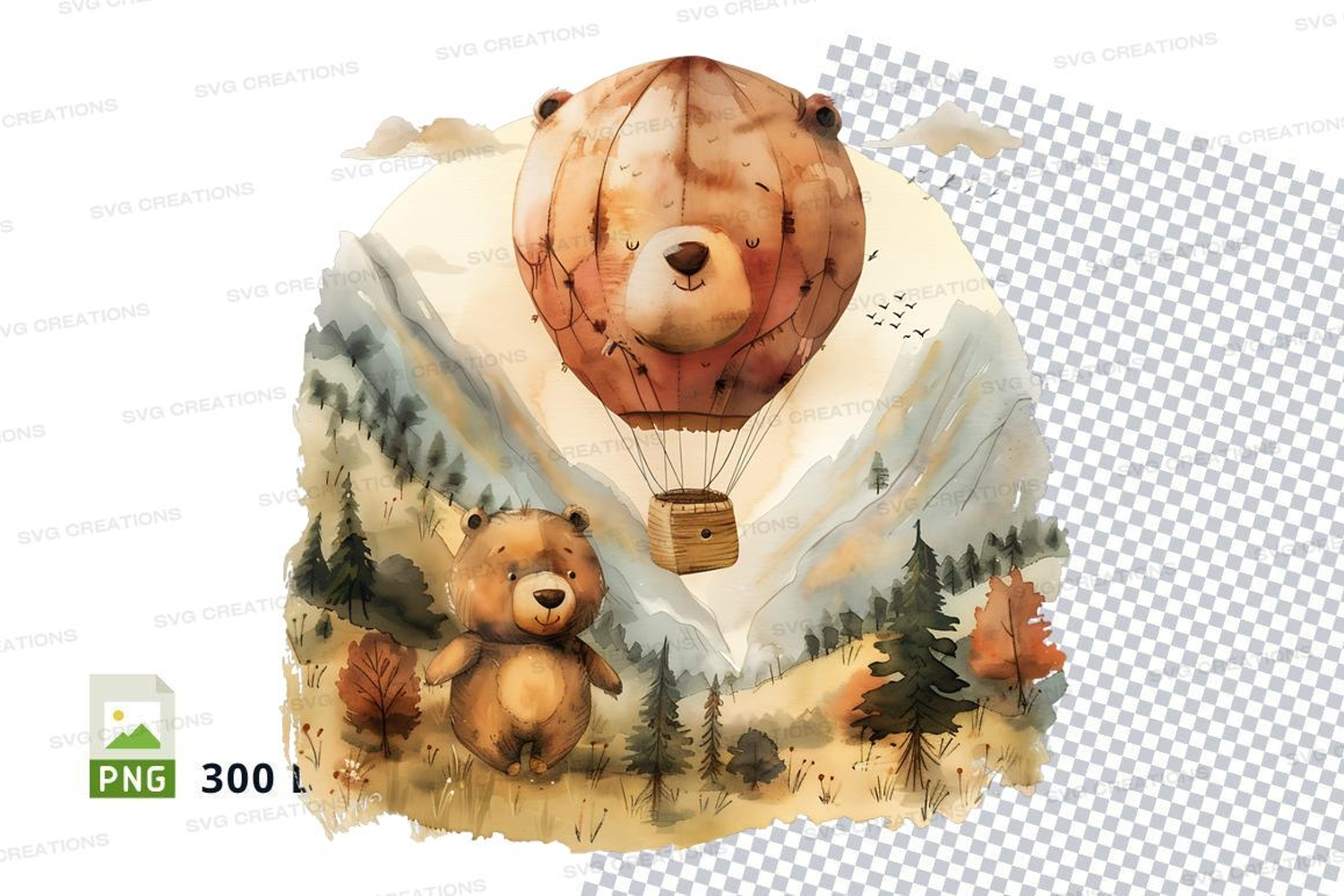 Family Watercolor Animals Cute Forest Adventure Bear Clipart Png Hot Air Balloon