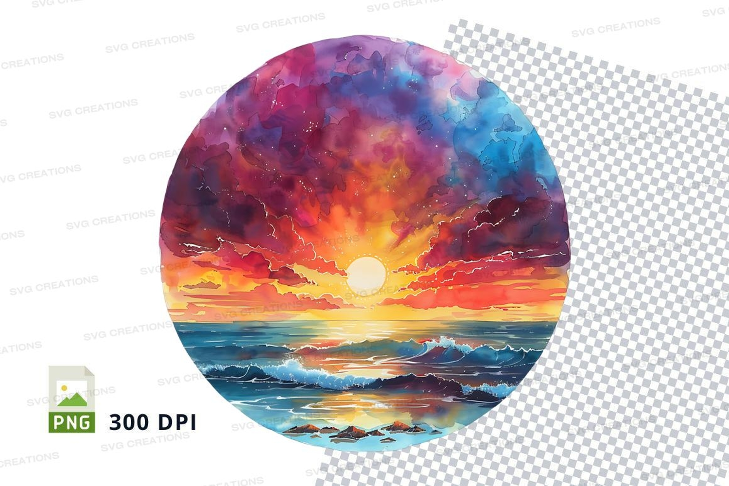 Vibrant sunset ocean clipart transparent PNG high resolution example image 1