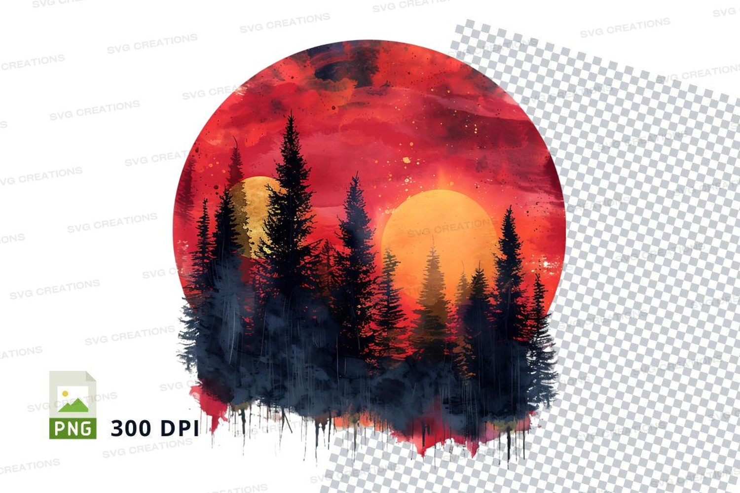 Similar Design Products to Sunset forest silhouette clipart transparent PNG high resolu
