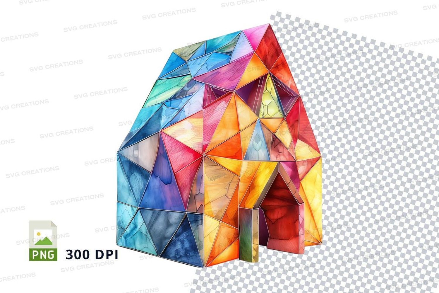 Colorful geometric origami house clipart transparent PNG 300 example image 1