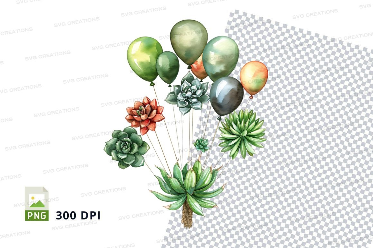 Colorful balloons cactus clipart bundle celebration transpar example image 1