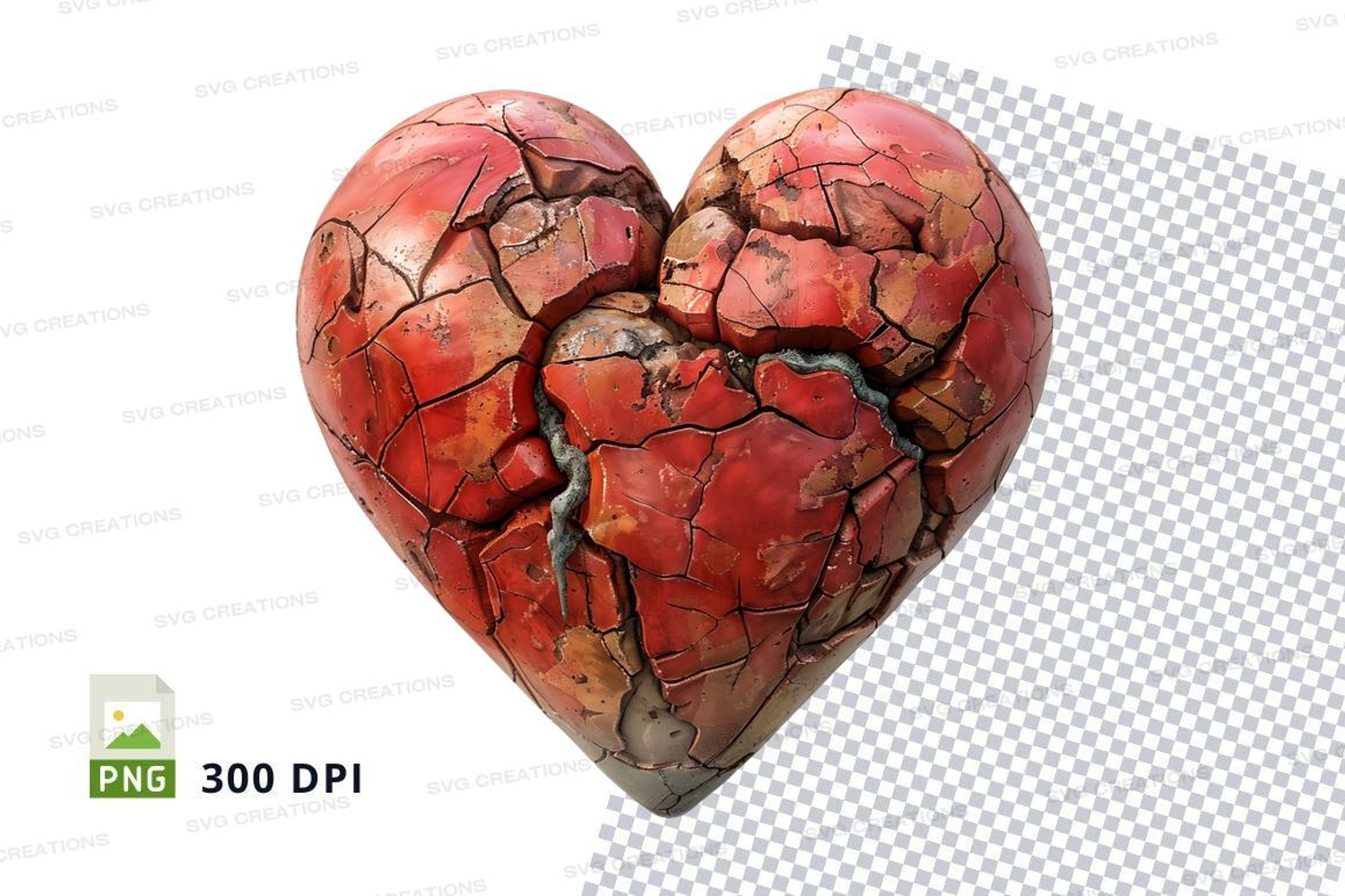 Broken heart clipart cracked red love emotion PNG 300 DPI example image 1