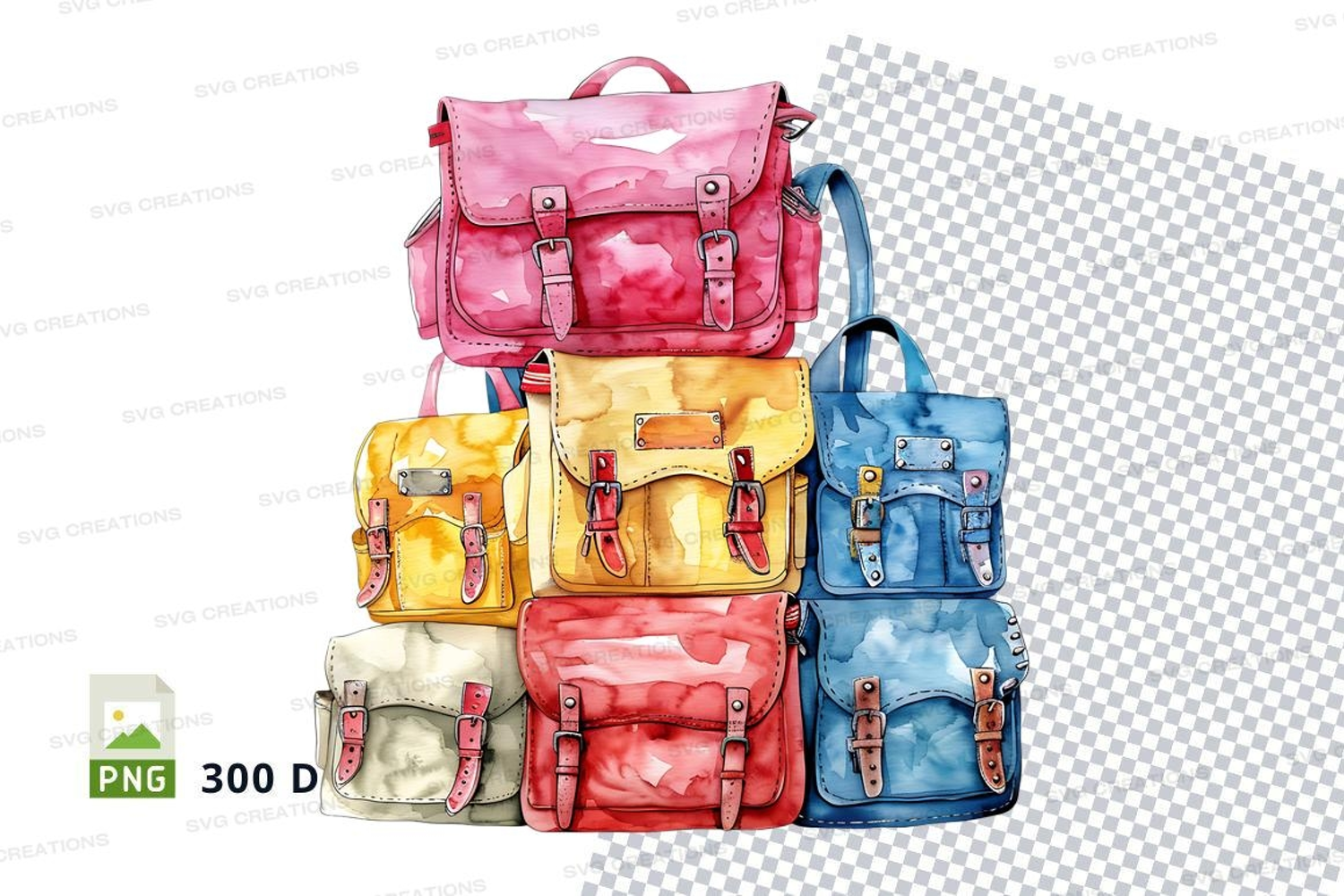 Colorful backpacks clipart set isolated 3D PNG example image 1