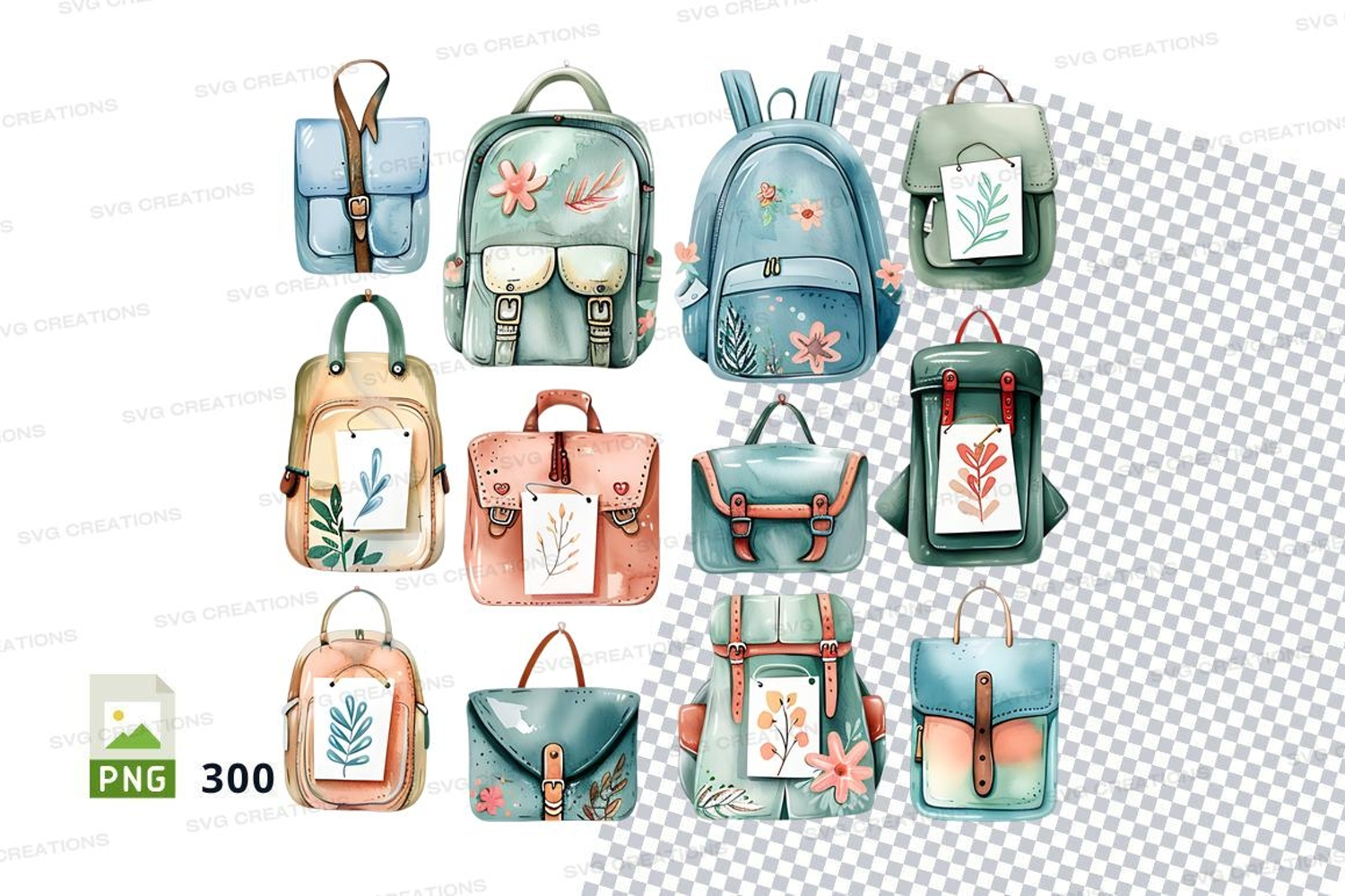 Animal Design Colorful Floral School Clipart Isolated Png White Backpack