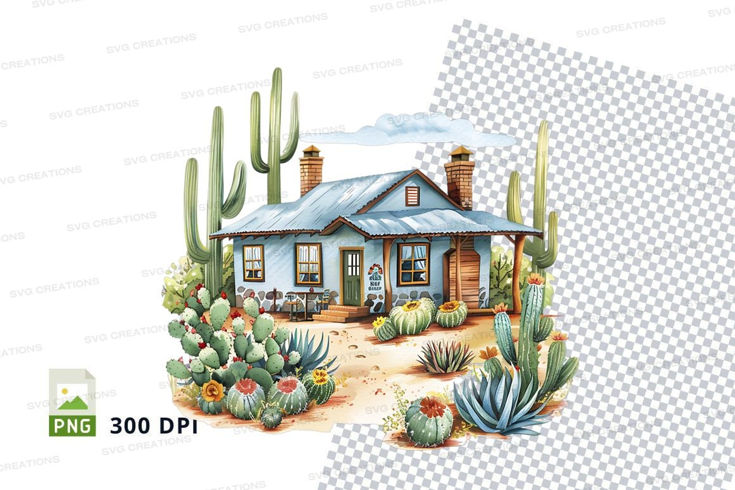 Illustration Clipart Desert Landscape Home House Cactus Succulent Cacti Plants