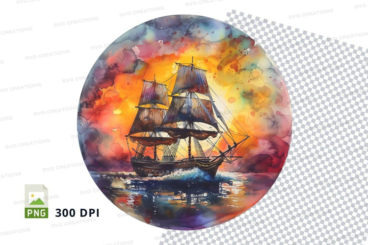 Similar Design Products to Sailboat sunset clipart watercolor vibrant reflection
