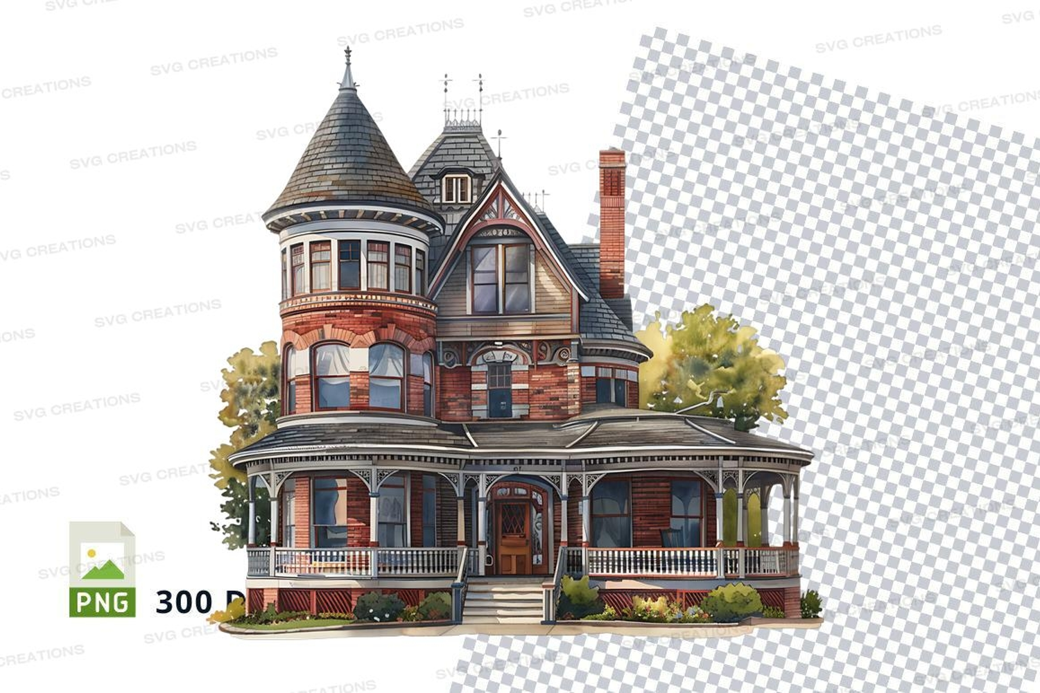 Similar Design Products to Victorian house clipart illustration vintage style home