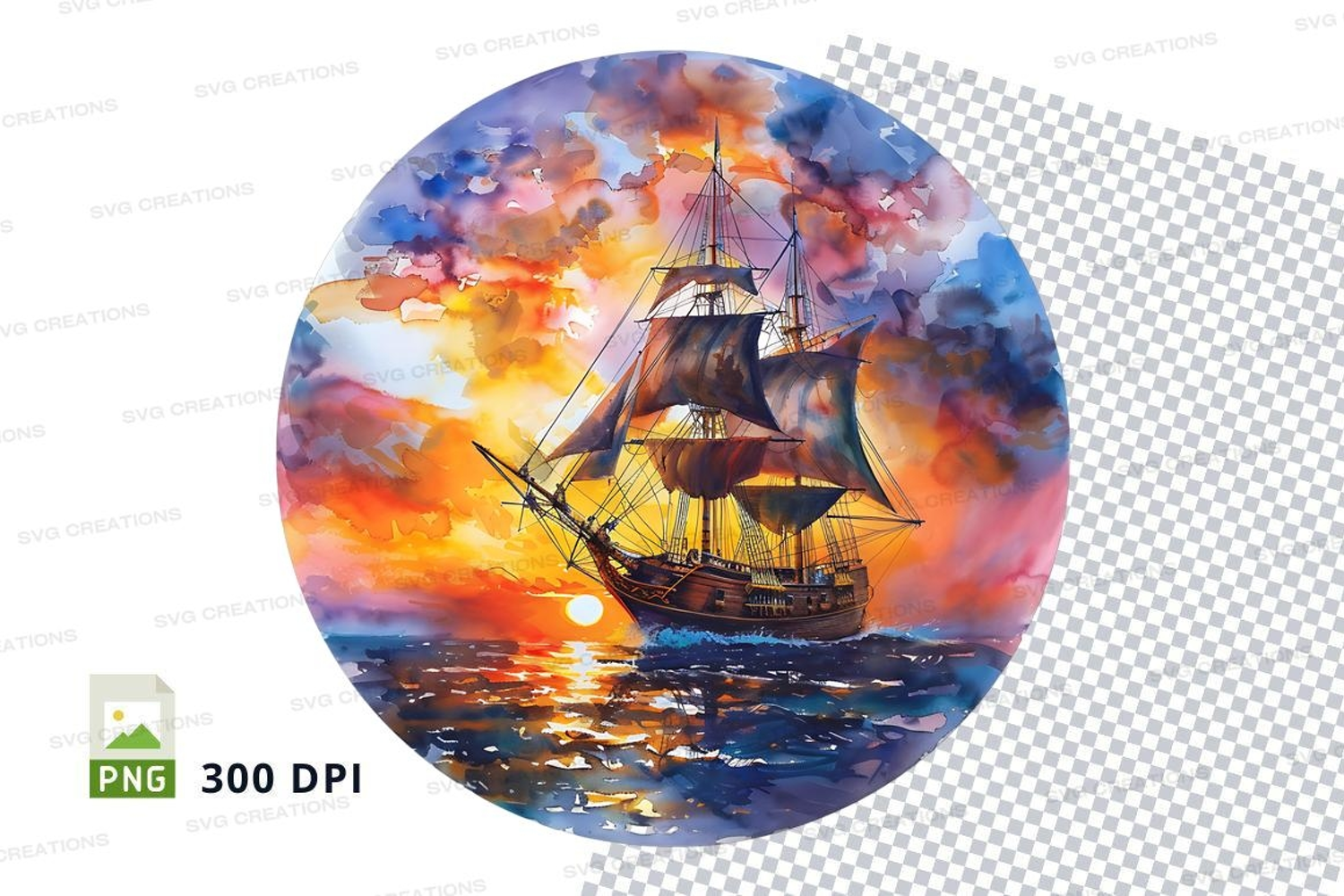Similar Design Products to Sailing ship sunset watercolor clipart circle