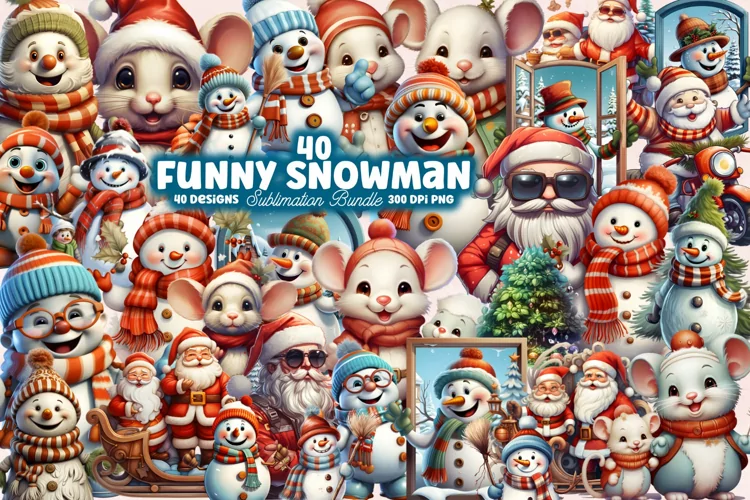 Funny Snowman Sublimation Clipart Bundle, Funny Snowman
