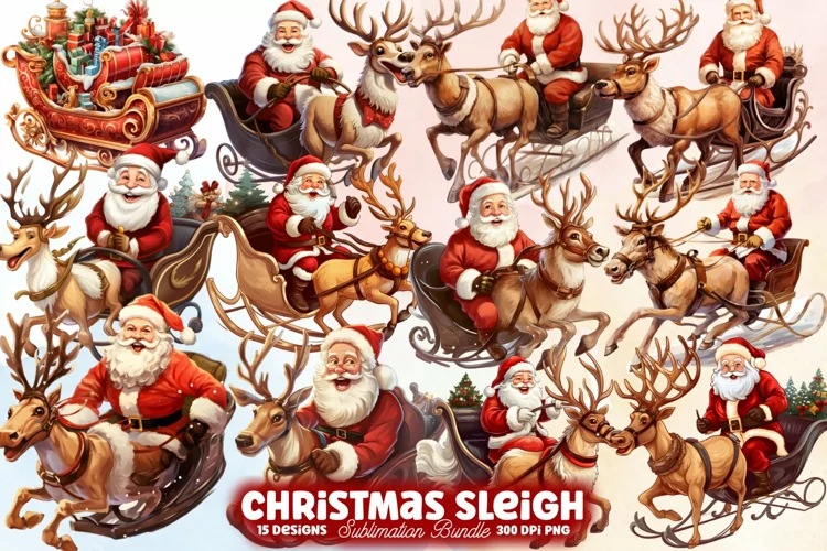 Christmas Sleigh Sublimation Clipart, Christmas Bundle