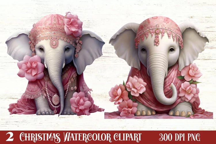 Cute Pink Christmas Animals Clipart Sublimation example image 1