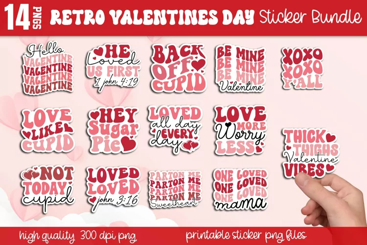 Retro Valentine Day Sticker Bundle, Retro Valentine Stickers Bundle, Retro Valentine Stickers, Retro Valentine’s Day Stickers