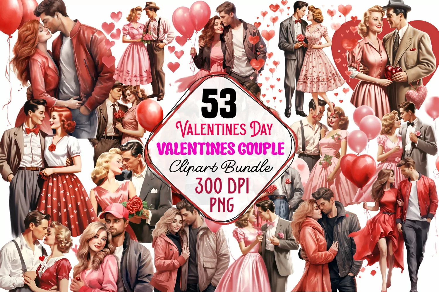 Classic Valentine Day Clipart Bundle, Classic Valentine Day, Classic Valentine, Pink Valentine, Clipart, Classic, Watercolor Clipart, background